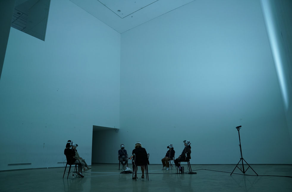 The performance consists of the viewers wearing the VR headsets, experiencing the story of the tragedy all at the same time. It is an attempt to create an intense communal experience mourning for the victims of the tragedy, as well as, a critical experiece questioning the state of our bodies within the contemporary society.